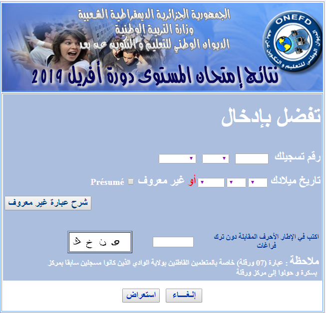 نتائج المراسلات 2021 رابط للموقع http://inscriptic.onefd.edu.dz/matricule.php