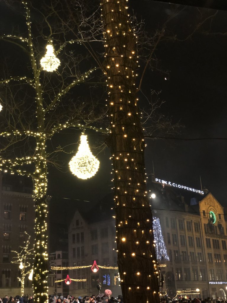 احتفلت مجموعة كبيرة من الناس في شتى مدينة أمستردام احتفلاً بنهاية العام الحالي بالألعاب النارية والألوان الصاخبة عدى تجهيزات الدولة في إضاءة الشوارع .