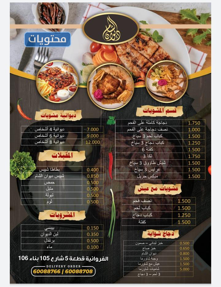 رقم مطعم ديوان الشام الكويت مع المنيو والأسعار