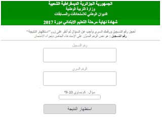 أعلنت وزارة التربية الوطنية في الإذاعة الوطنية والتلفزيون الجزائري أن إعلان نتائج امتحان شهادة إتمام المرحلة الابتدائية سيكون يوم 20 يونيو 2021 على موقع المجلس الوطني للامتحانات والمسابقات onec على العنوان التالي: الرابط : (http: //cinq.onec .dz) ثم نشرها على مستوى المؤسسة التعليمية.