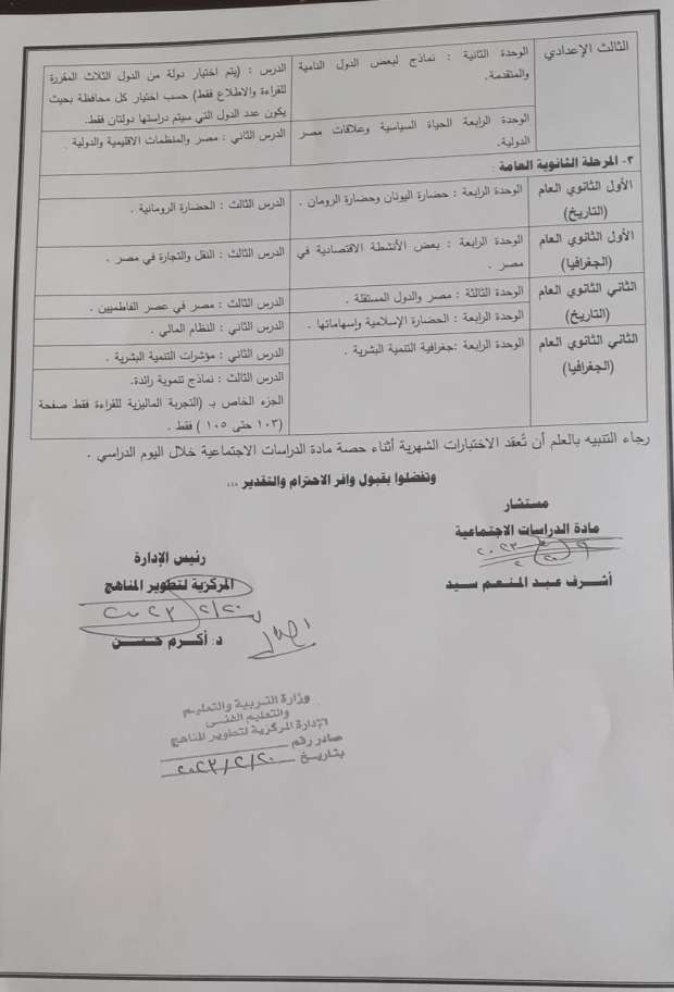 الدروس الملغية في ماده الدراسات للصف الثالث الاعدادي الترم الثاني 2023