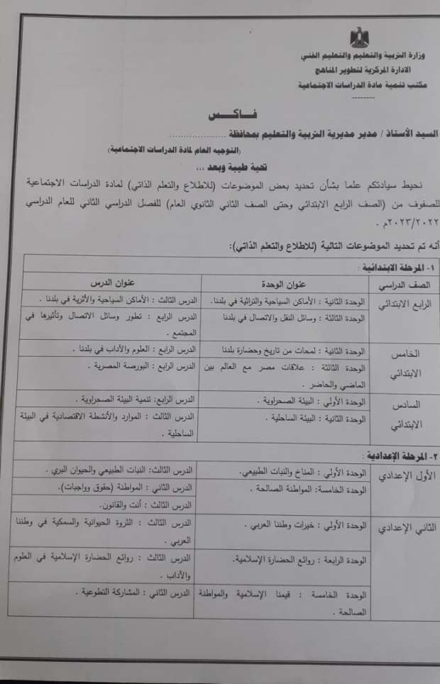 تقرر تخفيف مادة الدراسات الأجتماعية العام الدراسي 2023 بما يتراوح بين 10% حذف20%2حذف المحذوف فى منهج العلوم 2023