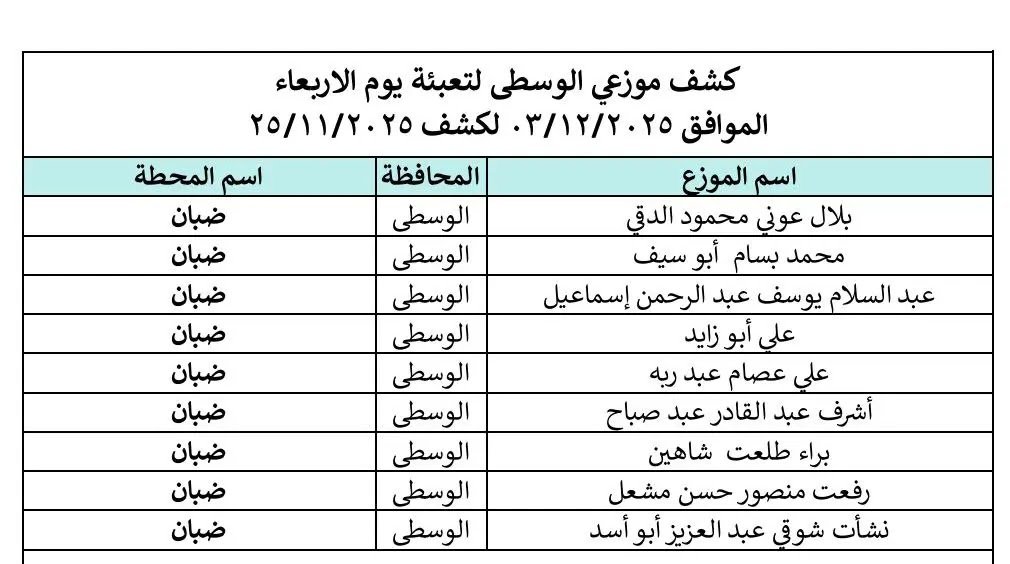 أسماء (أو كشف) الموزعين حسب المحافظة وكيف تُنظّم التوزيع