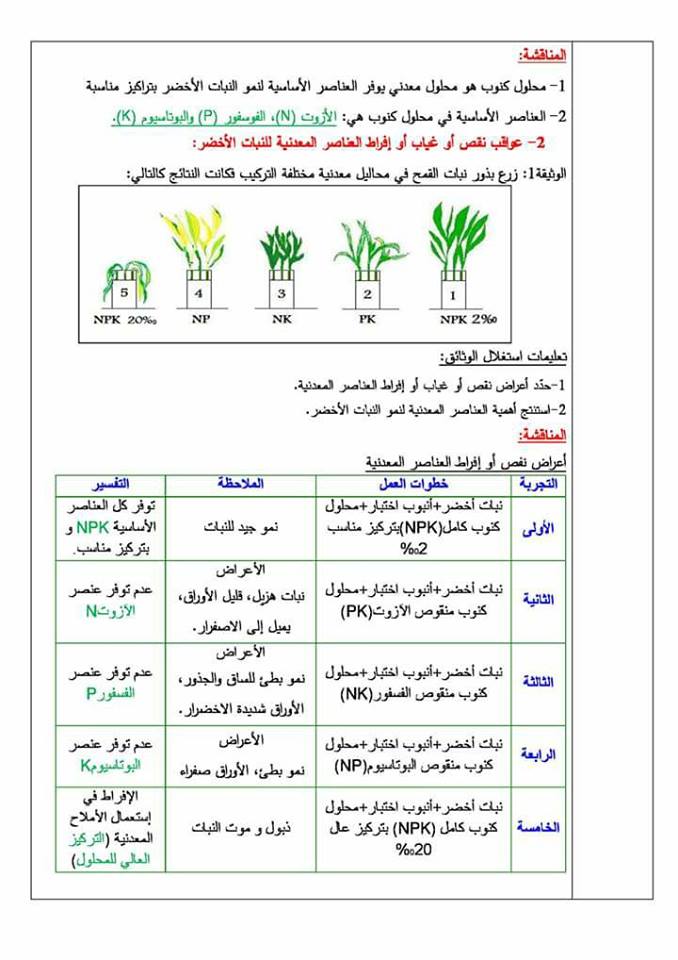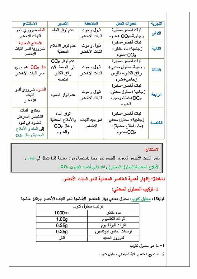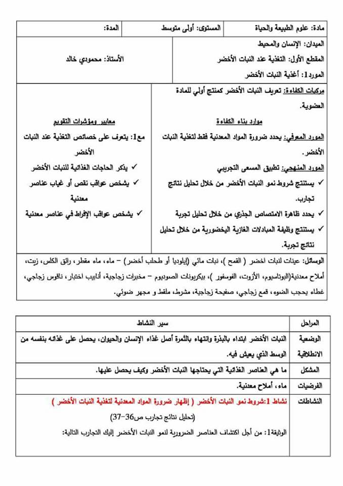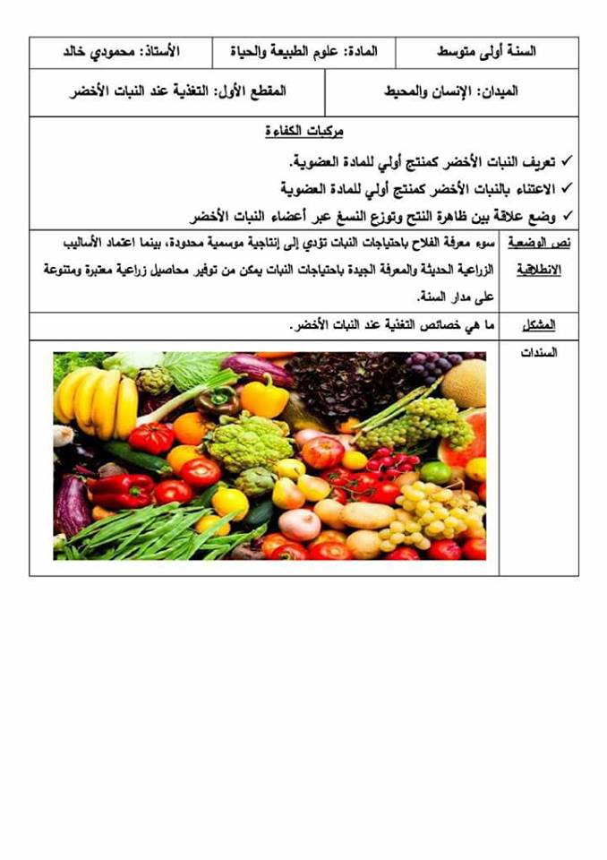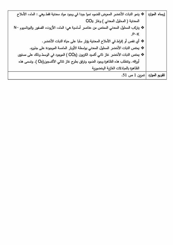 صفحة الطبيعة والحياة خلال السنة الأولى من متوسط قيمة الجيل الثاني