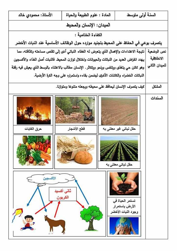 مذكرة الانسان و المحيط في مادة العلوم الطبيعية للسنة اولى متوسط – جاوبني